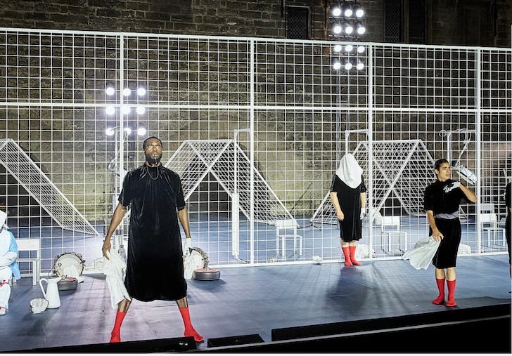Ainda por estrear, mas já com culto garantido, está O Sapato de Cetim (“Le Soulier de satin”) de Paul Claudel, com encenação de Éric Ruf da Comédie-Française, uma maratona de oito horas que começa às 22h e termina às 6h da manhã seguinte, quando o sol nascer sobre o Palácio dos Papas. Uma vigília teatral. Um ritual de resistência. Uma prova de que o teatro não dorme e para quem quer teatro a sério.